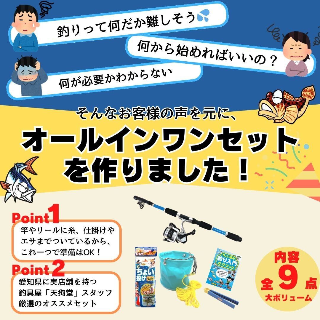 海釣り初心者におすすめの堤防ちょい投げセット。釣りを楽しむための必需品が一式揃った、お手軽価格の釣りセットです。堤防釣りに必要な要素が全て揃っているので、これさえあればすぐに釣りが楽しめます。ロッド、リール、仕掛け、ルアーなど、初めての海釣りでも安心して楽しめるセットとなっております。 青い海を眺めながら、自然と一体となる釣りの醍醐味。つり具TEN 海釣りセットで、あなたも釣りに魅了されること間違いなし!一本引いて、一日の疲れを癒す。釣りの楽しさをぜひ堪能してください。